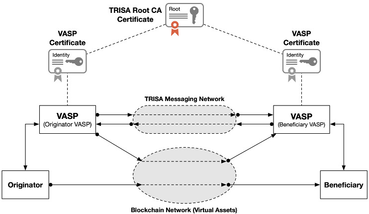 The Travel Rule Information Sharing Architecture (TRISA) was initiated in July 2019 as a response to emerging regulations from the FATF and FinCEN around data transfer for cryptocurrency transactions between Virtual Asset Service Providers (VASPs). The goal of TRISA is to enable compliance with the FATF and FinCEN Travel Rules, as well as Travel Rules implemented by equivalent (non-US) competent authorities for cryptocurrency transaction identity information without modifying the core blockchain protocols, and without incurring increased transaction costs or modifying virtual currency peer-to-peer transaction flows. TRISA aims to do this on a global level while: